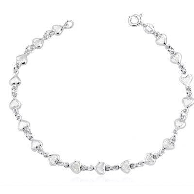 The 925 -heart silver bracelet with zirconia is a jewel designed for those who appreciate romantic and exquisite details. Its delicate hearts, 5mm in size, are decorated with zirconias that offer a discreet and charming shine. The buoy closure provides practicality and safety, while the 925 silver material ensures strength and durability. Ideal for use alone or combined with other bracelets, this piece is versatile and adapts to different styles and occasions, from everyday life to special events.