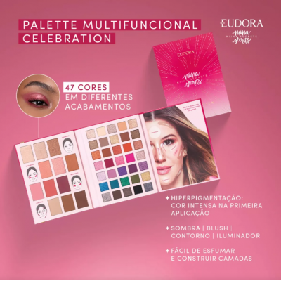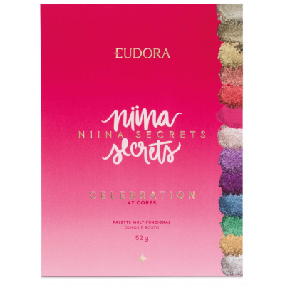 Celebrate makeup with the multifunctional palette Niina Secrets Celebration! There are 47 colors, inspired by trends ranging from neutral tones to the most vibrant colors, allowing the creation of looks, from the most classic to the most elaborate.