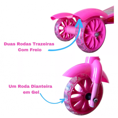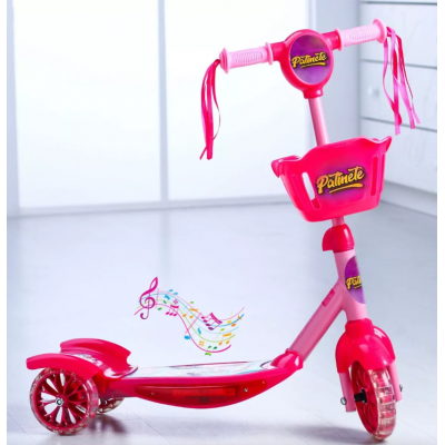 Children's scooter boy girl music 3 wheels led baskets color pink