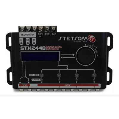This Stetsom STX2448 digital audio processor has 2 input channels and 4 output channels, 15 bands equalizer, with 12 equalization presets to make the sound more like your sound. It serves from the lowest, to the highest frequencies, with response from 10hz to 22.500hz and great sensitivity, so the sound becomes more audible and pleasant.