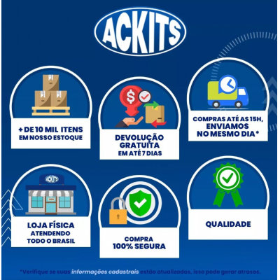 • About the delivery time, Ackits guarantees order on the same day for orders up to 15hs. For purchases made after this time, they will be sent within 1 business day. We ask patience in case of delays, they usually happen due to unforeseen transport, such as disasters or abnormal situations. For these cases, ACPARTS will be accompanied between the carrier and you to receive your product as soon as possible.